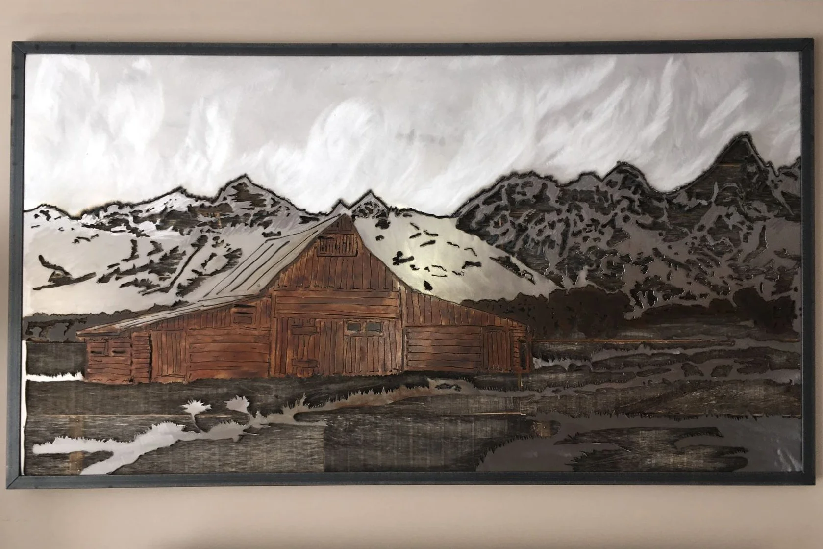 This was a gift for my wife, and is one of the earliest pieces I’ve made. Kimberly took this awesome black and white photo when our family visited the Grand Tetons in mid-2017. After we came home, I could not stop thinking about transforming this photo into something spectacular. It is now a centerpiece in our home.