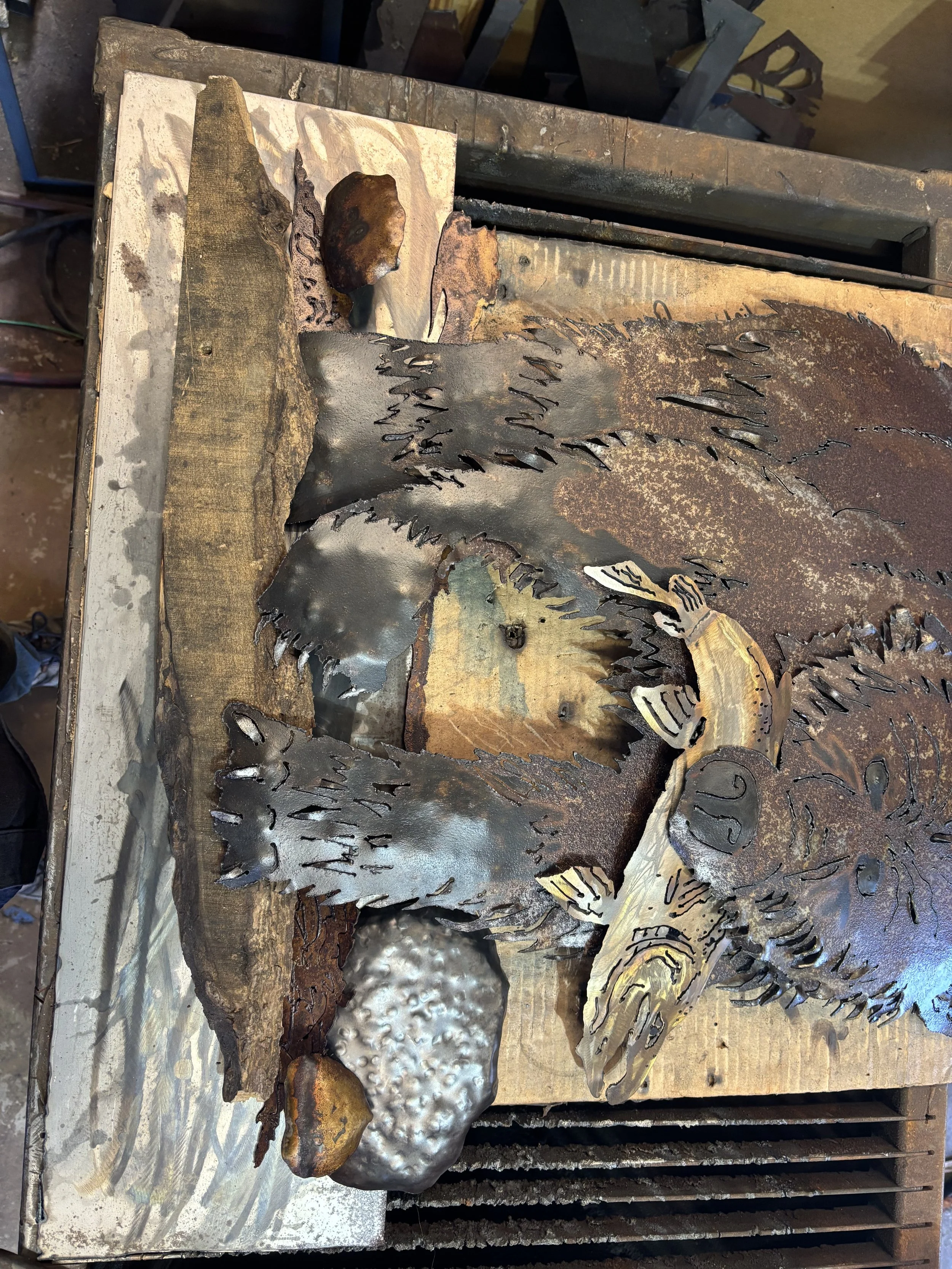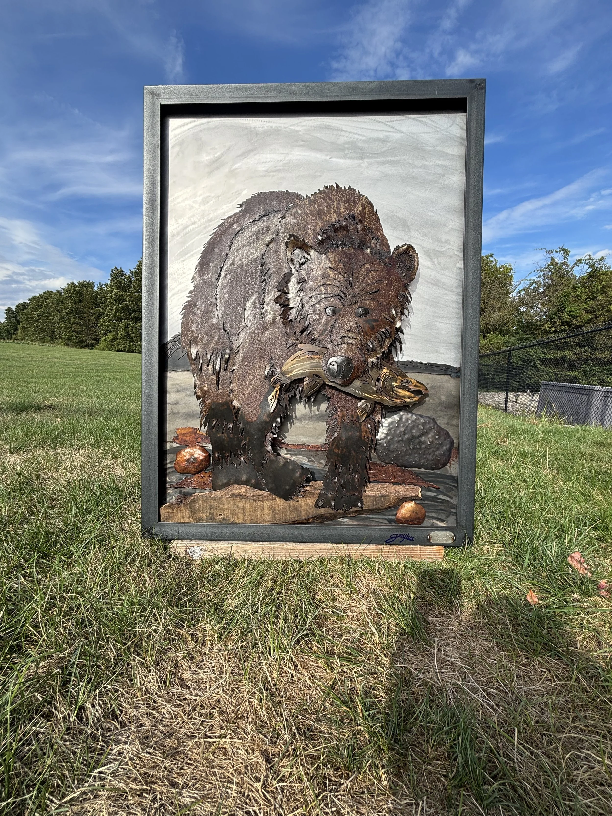 “River’s Bounty” is fresh from the shop—a striking scene of a brown bear claiming its catch. This piece captures strength, survival, and the reward of persistence. Available now for collectors who want a statement of the wild in their space.